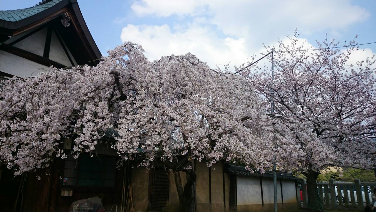 昨日3月31日の氷室神社境内、枝垂桜です。おそらく今週、来週が一番の見ごろだと思います。多少差がありますが、現時点でほぼ満開です!