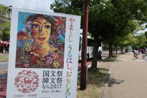 みなさこんにちは、奈良観光ガイドです。秋、観光のシーズンが間もなくはじまります。毎年この時期は多く方が奈良観光をしてくださいますが、この秋は例年以上になるかもしれません。9月1日から「第32回国民文化祭」「第17回全国障害者芸術・文化祭」が今年は奈良で開催されます。ちなみに2つ一体開催するのは全国初だそうで、開催前から注目を集めていました。期間中は開催地で演劇や吹奏楽、美術作品の発表が行われ、その様子から別名「文化の国体」ともよばれています。2017年奈良では初の開催で、オープニングセレモニーは9月2日東大寺大仏殿で行われる予定です。開催期間は9月1日〜11月30日。コンサートやシンポジウムも予定されているので、期間中奈良に訪れる方は要チェックです!