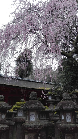 奈良公園は日本さくら名所100選にも選ばれており、1700本もの桜が植えられています。4月の上旬、今の時期はヤマザクラや枝垂れ桜、下旬も九重桜など様々な品種をお楽しみいただけます。左の画像は4月1日の氷室神社の画像、右の画像は本日春日大社で撮影された画像です。枝垂れ桜は見ごろをむかえています。